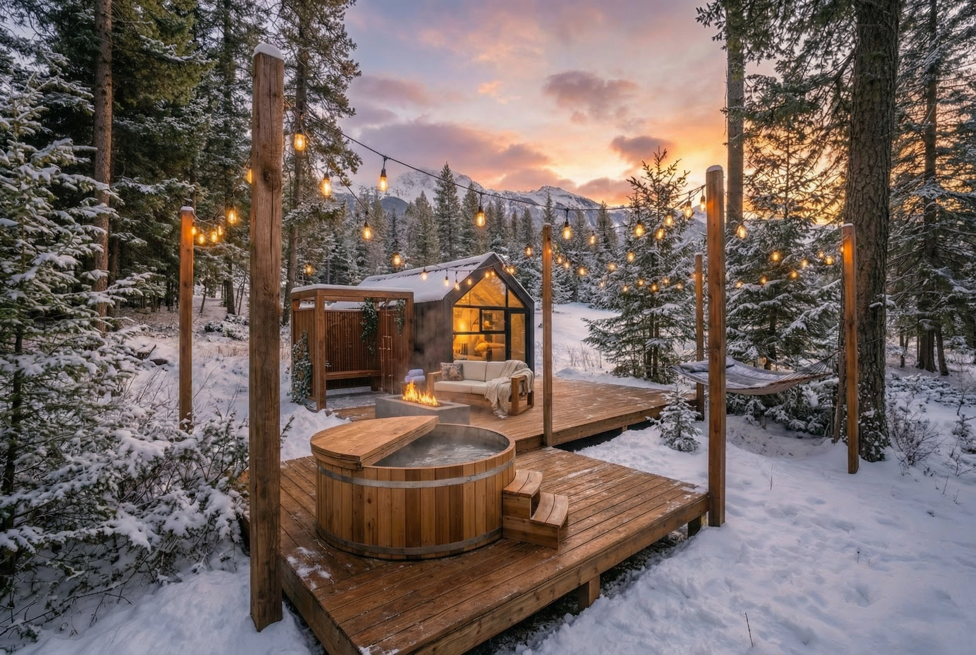 Tucked deep in the pines beneath Mt. harding, Mt. Harding Hideaway offers a secluded retreat where nature and comfort exist in quiet harmony. Soak in your private cedar hot tub beneath string lights, gather by the fire as snow settles around you, and unwind inside a warm, thoughtfully designed cabin made for stillness and connection. Mt. Harding Hideaway invites guests to slow down, breathe deep, and rediscover the restorative power of the mountains.